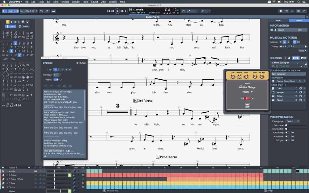 What can I do with Guitar Pro? Guitar Pro is a sheet music/tablature editor for 4- to 8-string instruments: - guitar, bass, banjo, ukulele, etc. This is an ergonomic, comprehensive tool for beginning to advanced musicians who wish to make progress, compose, or simply play along on their guitar. Guitar Pro is now the standard reference in the world of tab-editing software. Guitar Pro is the most popular guitar tablature editor on the market. Vanity riddim download. Import GTP, GP3, GP4, GP5, GPX, MIDI, MusicXML, and ASCII files. Export notation as PDF or PNG graphic formats or GP, GPX, GP5, MIDI, MusicXML, and ASCII files. Export audio as MP3, OGG, FLAC, AIFF, and WAV. How to use remote mouse. Files can be password-protected to prevent opening or modification.